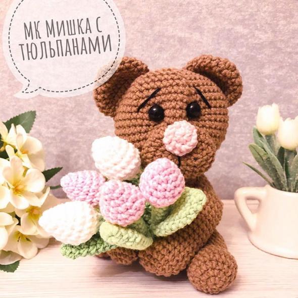 Мишка с тюльпанами